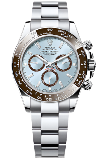 Rolex Platinum Daytona - Chestnut Brown Cerachrom Bezel - Ice Blue Baguette Dial - Oyster Bracelet - 126506 icebag